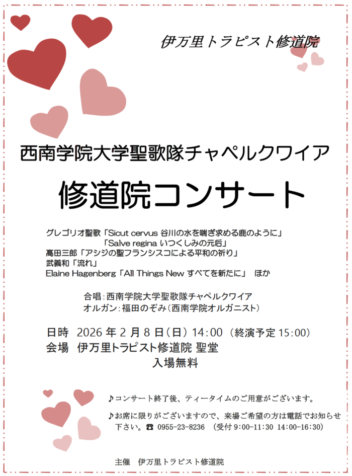 ◆ 2026年02月08日(日)14:00~/伊万里の聖母トラピスチヌ修道院